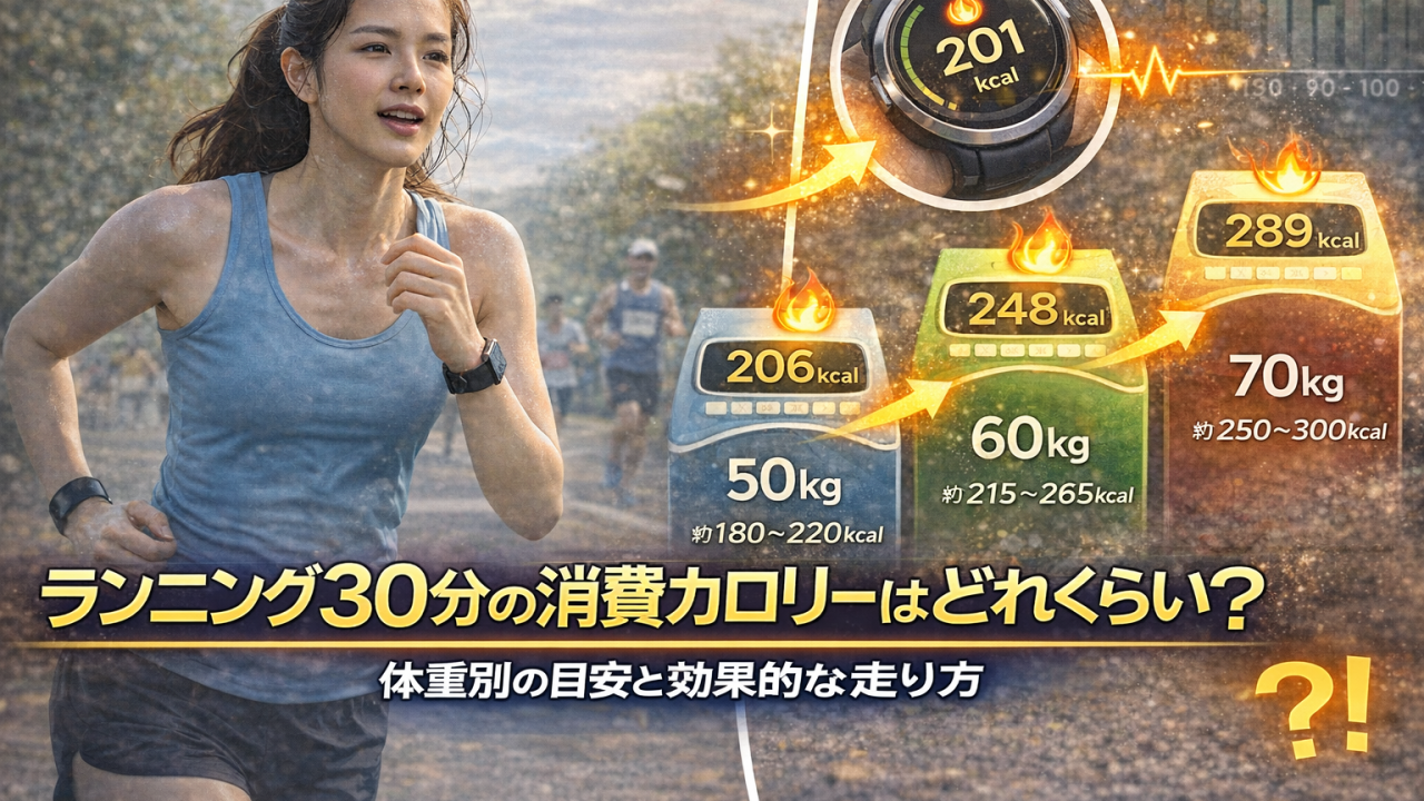 この記事では、ランニング30分の消費カロリーをテーマに、体重やペースによる違いを整理しながら、分かりやすく解説していきます。