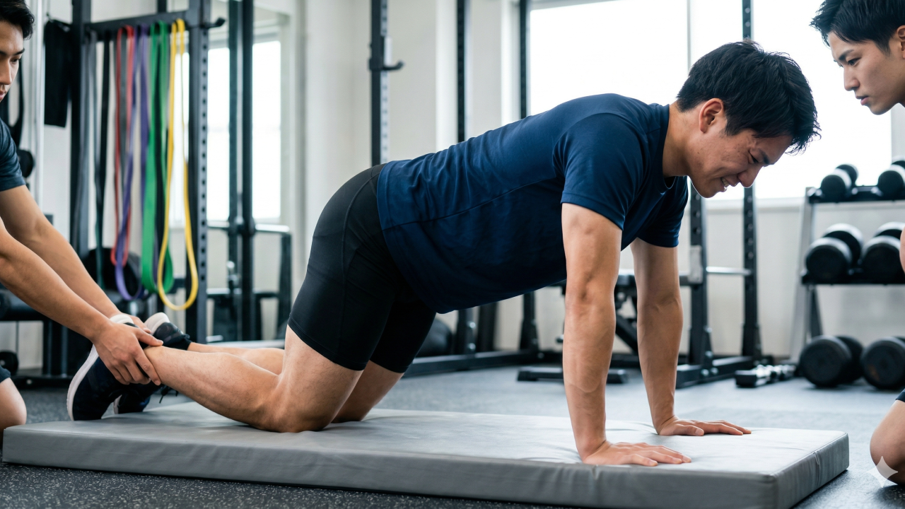 一見すると、膝をついた状態から体を前に倒すだけのシンプルな動きですが、そこには筋肉の質を劇的に変える科学的な仕掛けが隠されています。