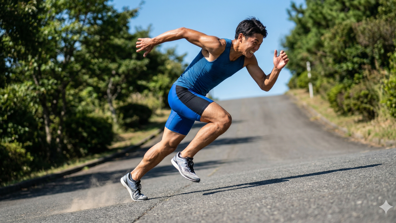 逆に、骨盤をグッと前に押し出し、着地した足に素早く乗り込むことができれば、坂道特有の負荷が軽減され、驚くほどスムーズに登れるようになります。